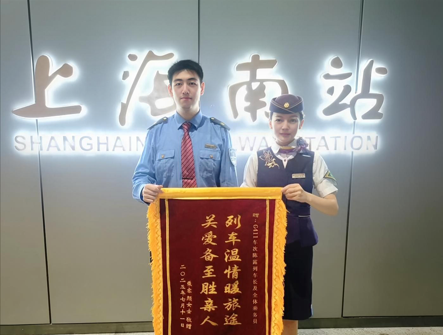 李成亮来自江苏连云港,出生于2004年,是铁路上海客运段高铁六车队的列车员。